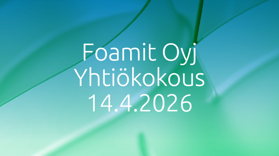 Foamit Oyj:n varsinainen yhtiökokous pidetään tiistaina 14.4.2026 Oulussa.